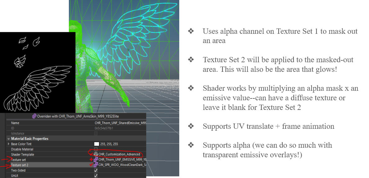 I was responsible for tech art on the Operator cell (operators, weapons, and gadgets). I led the R&D for Paragon on our cell, creating prototypes that experimented with shaders, outfit modifications, custom animations, add-on skeletons, VFX, etc.